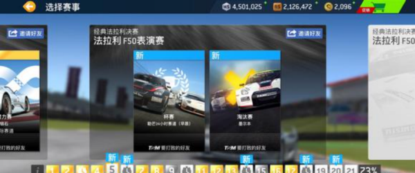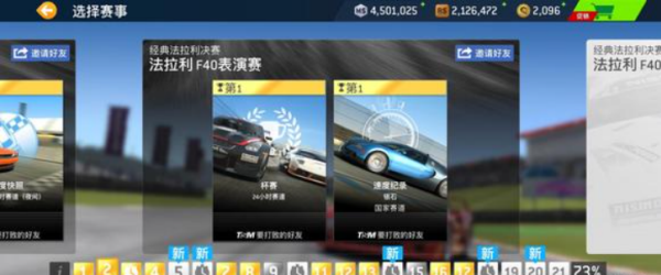 1、在赛事第二页,新增加了f40表演赛,所以玩家不再需要前往v8对决,而是完成第一页的出借车比赛后直接解锁表演赛,然后用表演赛折扣买下f40