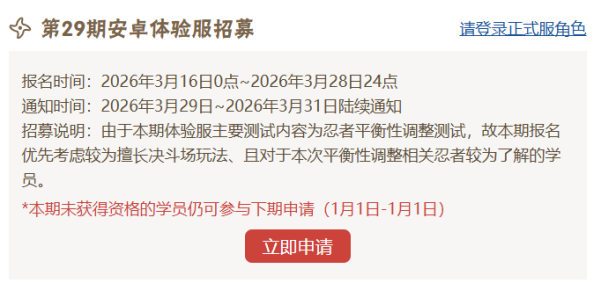 1.体验服安卓区不定期开放招募,需留意官网体验专区或官方公众号公告。