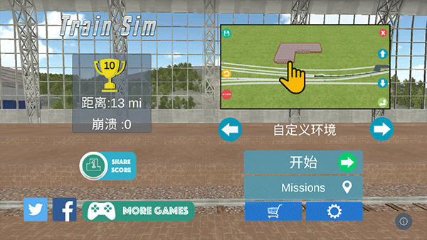 1、进入火车模拟高级版游戏主界面,找到并点击齿轮形状的设置按钮。