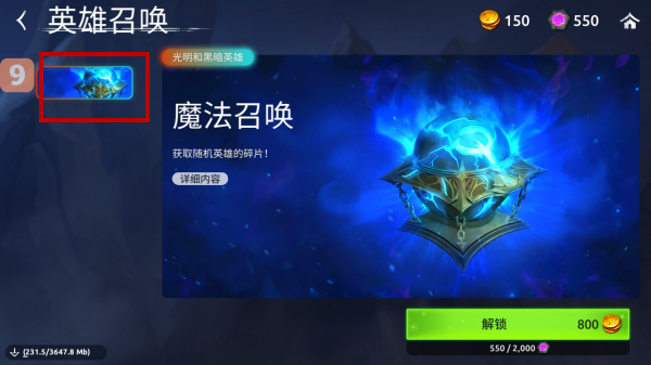 3、点击魔法召唤卡池中的解锁