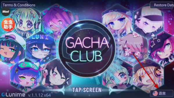 1、下载好加查俱乐部游戏后,来到了游戏的主页面,点击右下角的’语言‘